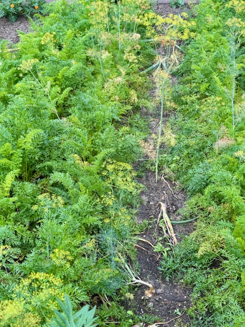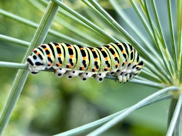 Die tolle Raupe auf der Dillpflanze ist die des Schwalbenschwanzes.